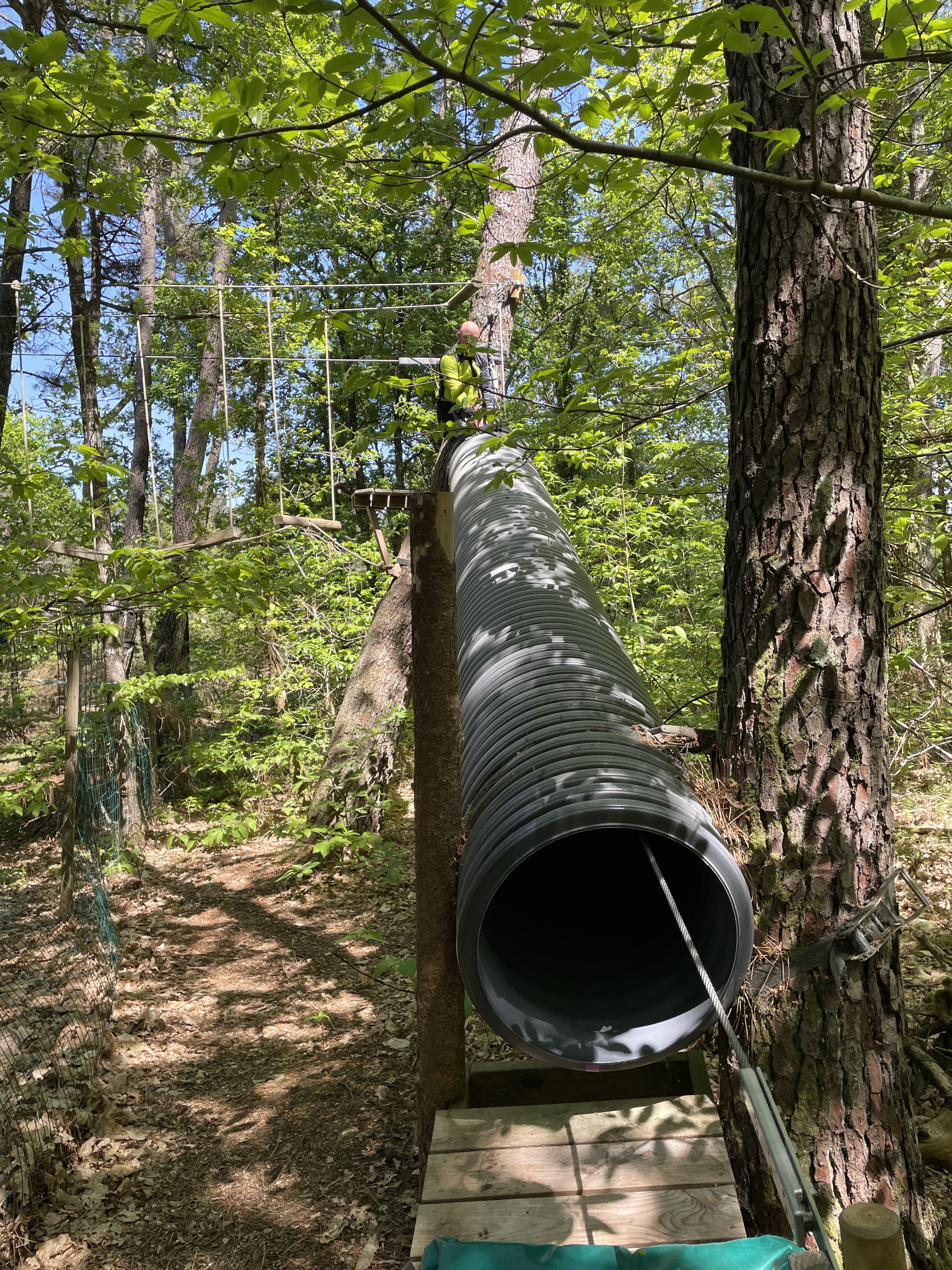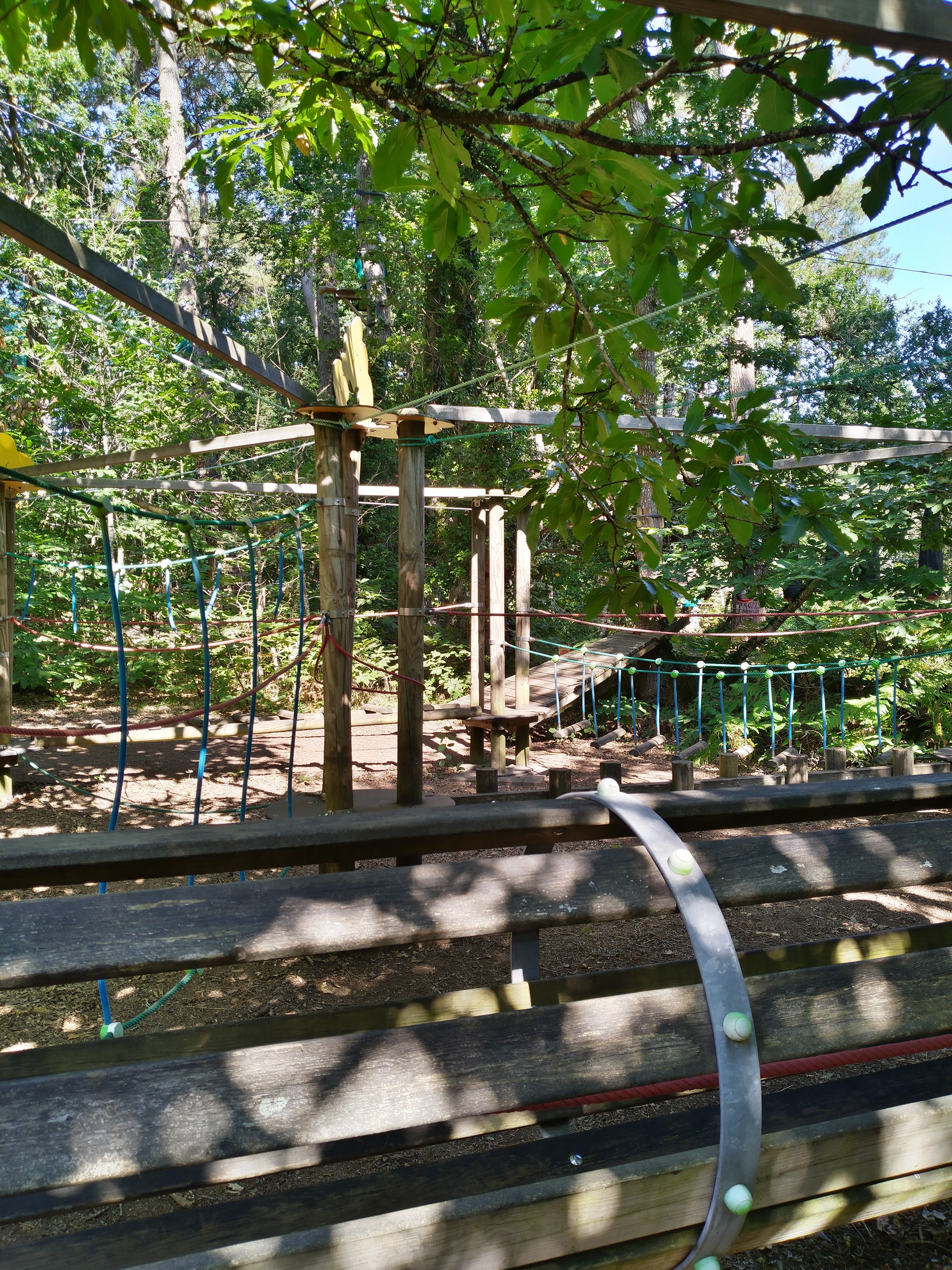 Je déconseille fortement le parcours pitchoune pour les tous petits, il n'est pas en très bon état et pas franchement adapté au petits. Toutes les structures bougent au lieu d'être fixe. Le parcours juste au dessus est presque plus adapté. En revanche la partie filet sans baudrier est très sympa et impressionnante.