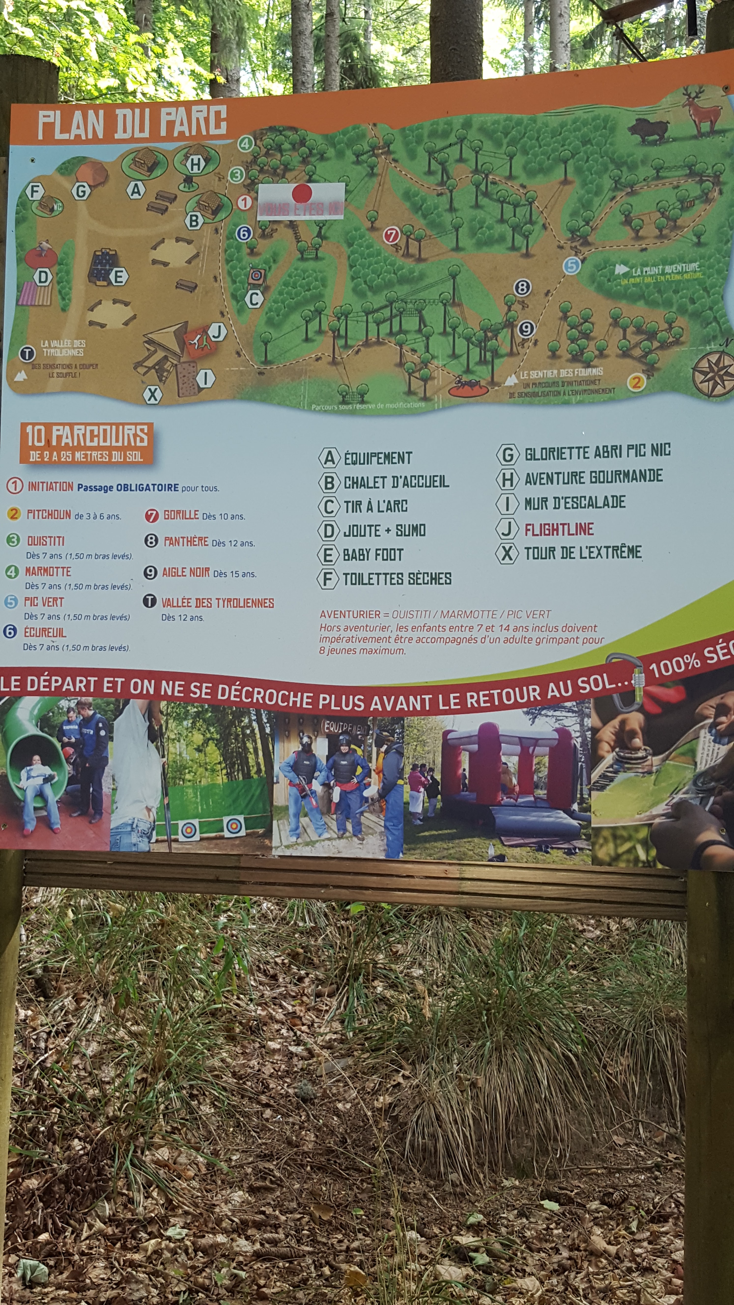 Parc sympa, mais beaucoup de monde sur notre créneau dont un centre aéré. Il ne faudrait pas laisser monter tout ce monde sans vérifier qu'il y ait assez d'encadrants, car beaucoup de petits avaient du mal à avancer ou se décrocher, du coup gros bouchons sur les parcours.