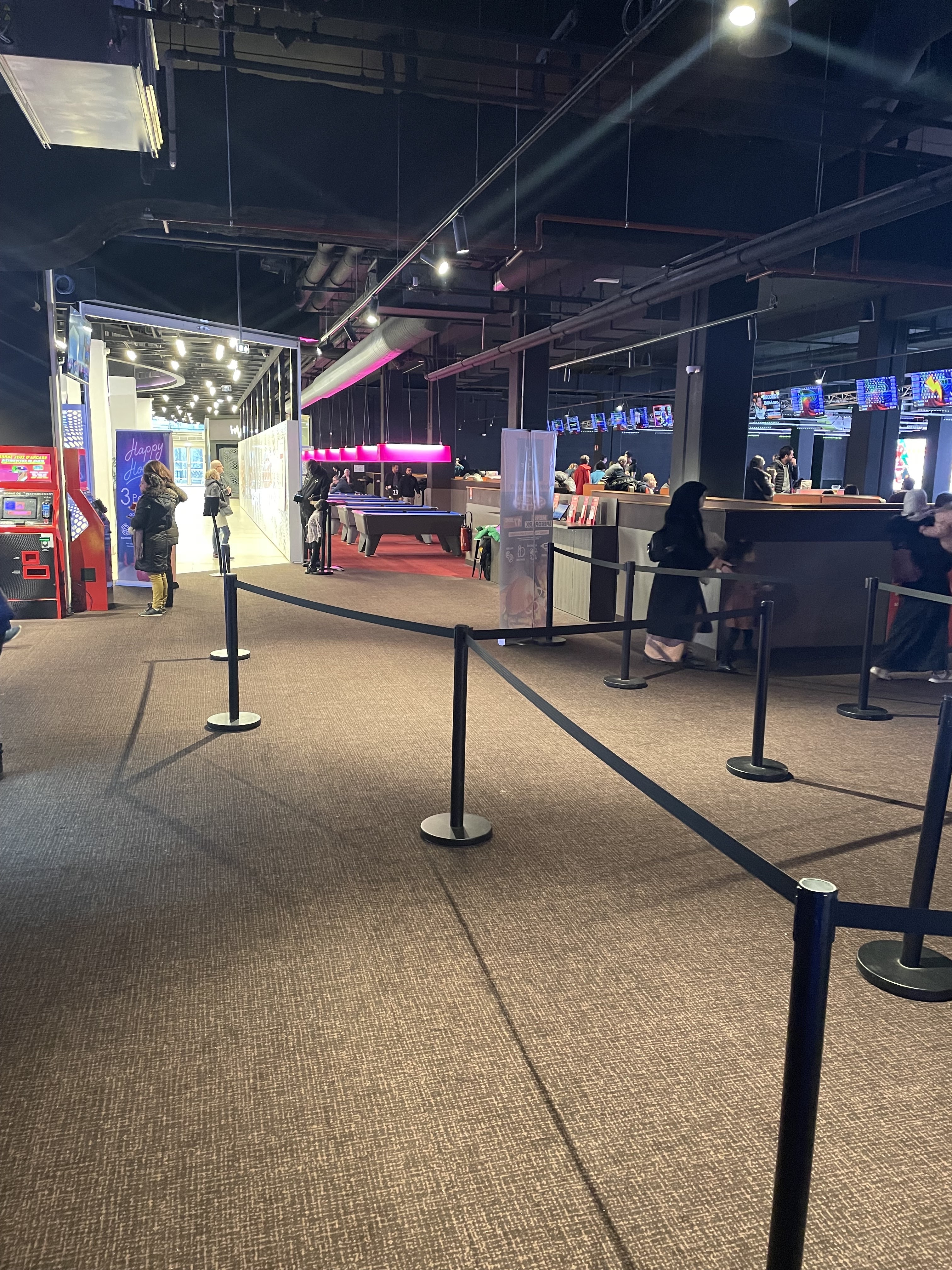 Posté le 16/02/2024 à 15:15"Le personnel est fort sympathique . L’endroit est bien rempli , il y a une attente pour le bowling entre 30 à 60 min , pour le karting jusqu’à 2h. Malgré l’attente , vous avez les jeux d arcades, le baby foot , le billard et le BAR qui est disponible pour VOUS. On s’était bien amusé!"