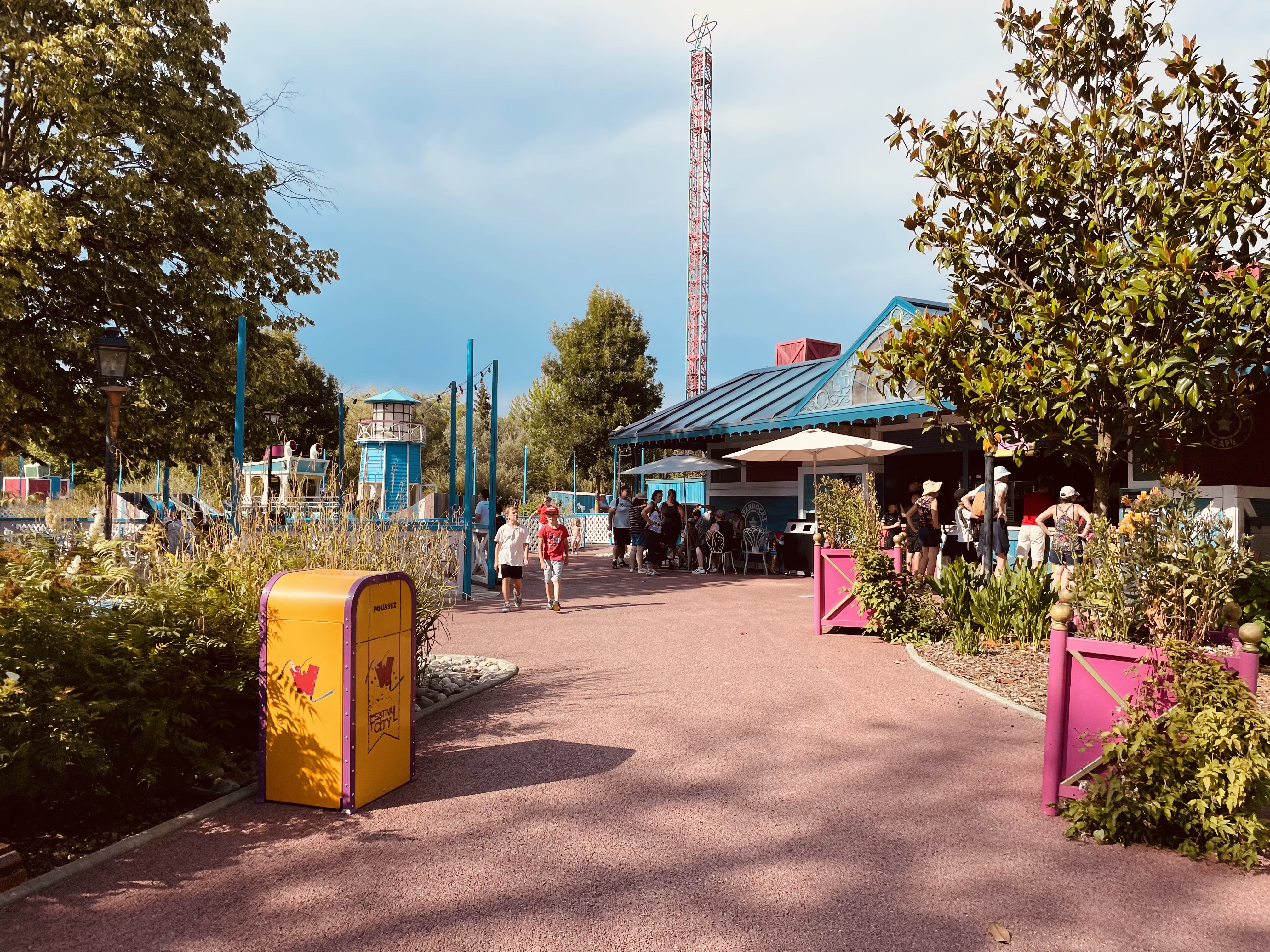 La journée idéale pour profiter de ce parc. De la chaleur mais pas excessivement de soleil, peu de monde. Les plus? Son prix, l’accueil, les sourires, la proximité (ça change des gros parcs connus), les jeux d’eau (un luxe avec cette chaleur), la zone de pique nique a l’ombre). Les moins? Les travaux très présents, le circuit du train très court (on en veut toujours plus quand c’est cool), pas mal de restaurants fermés, les prix des glaces (5,10€ un granité, inadmissible)